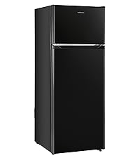 Upstreman 7.7 Cu.Ft. Refrigerator with Freezer, Double Door Fridge, Adjustable Thermostat, Large Capacity, Reversible Door Swing, Refrigerator for Apartment, Office, Dorm, Black(BD75)